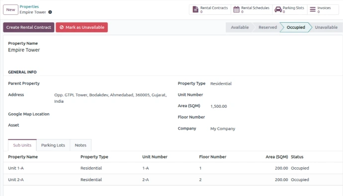 - Property & Unit Setup with Live Status: Manage properties, units, and parking with real-time status tracking (Available, Reserved, Occupied, Unavailable).