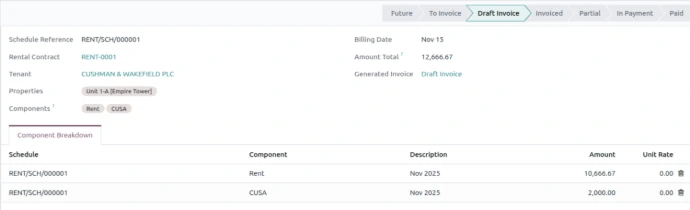 - Escalation Rules: Apply from effective dates; later changes update only future, uninvoiced schedules.
