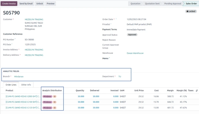 - Header-to-line propagation: Auto setup of analytical accounts from header to all lines.