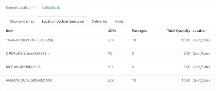 - Line Planning + Item-wise Location: Add Lines pulls eligible SO lines by those filters (grouped by SO); enter Qty Planned → shipment lines created + item-wise combined lines (same product/UoM) where source location can be changed.