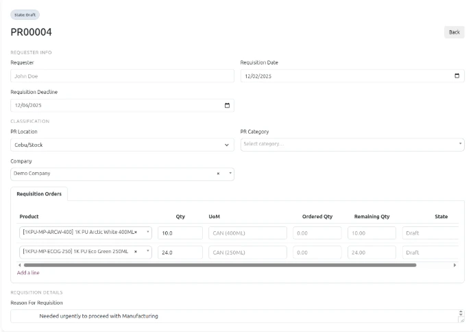 - Department head/manager can confirm the purchase requisitions to keep spend controlled.