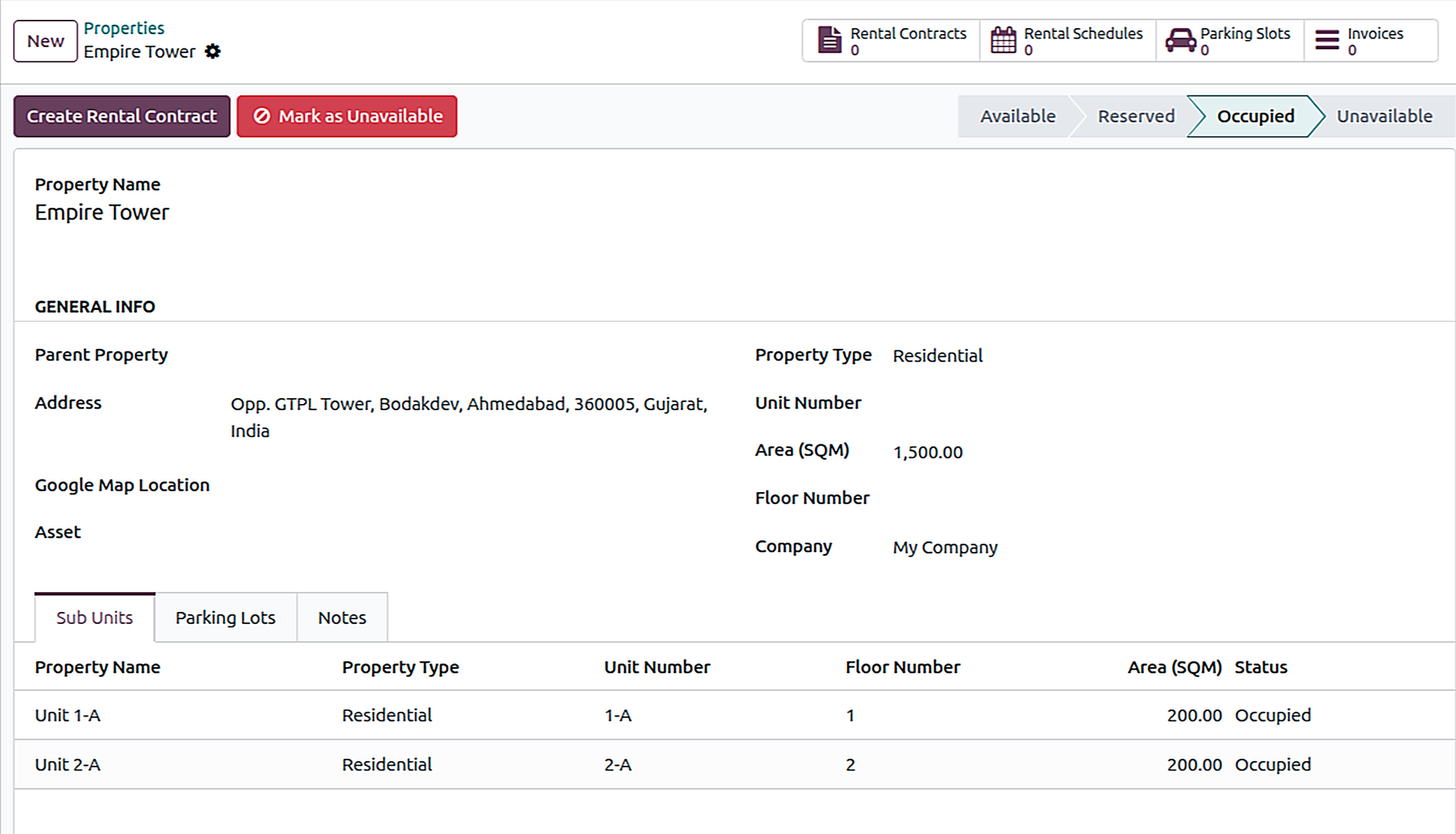 - Property & Unit Setup with Live Status: Manage properties, units, and parking with real-time status tracking (Available, Reserved, Occupied, Unavailable).
